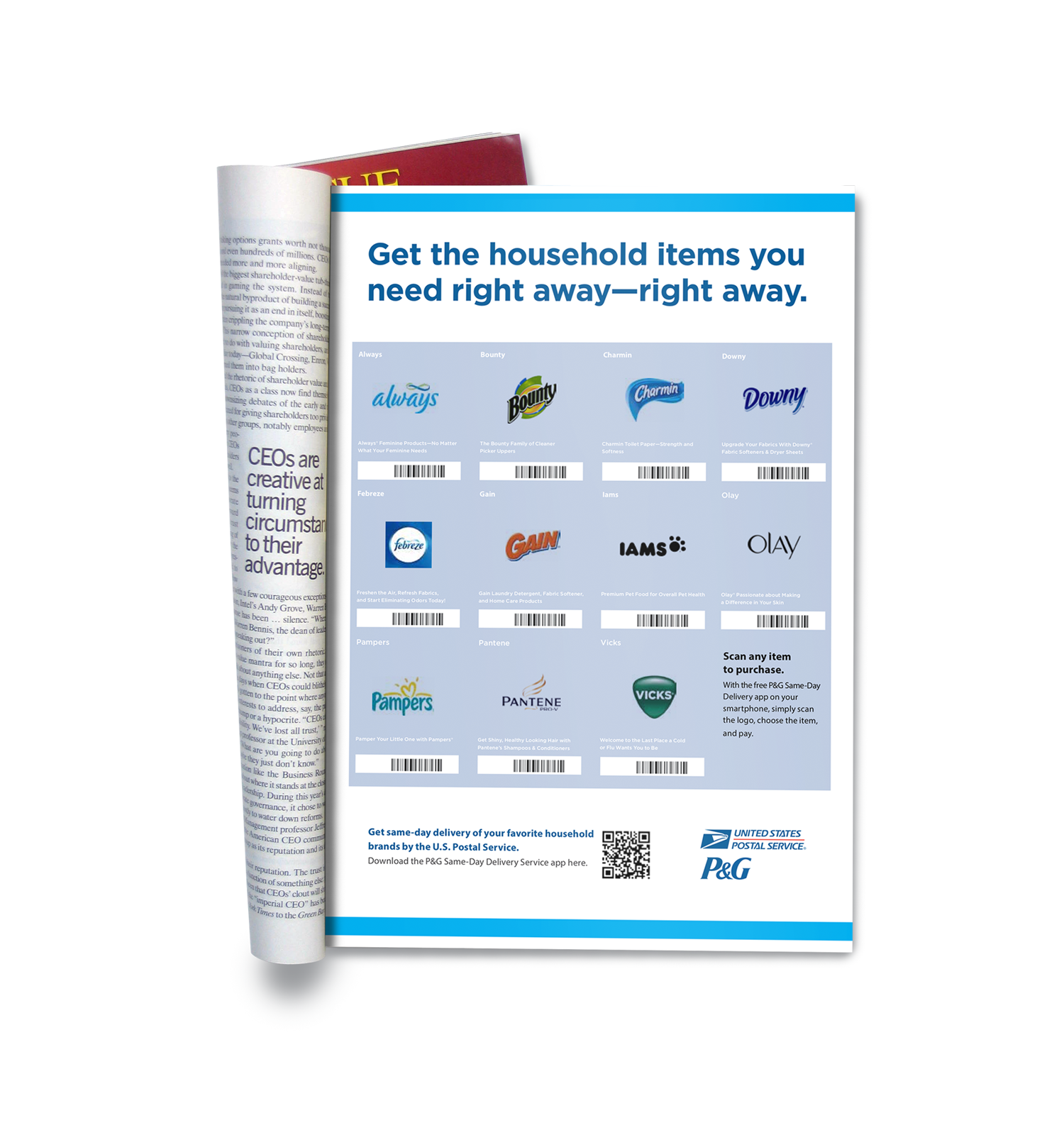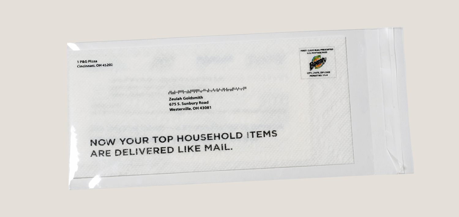 Test mailer for same-day delivery of Bounty kitchen rolls that was printed on Bounty roll.
